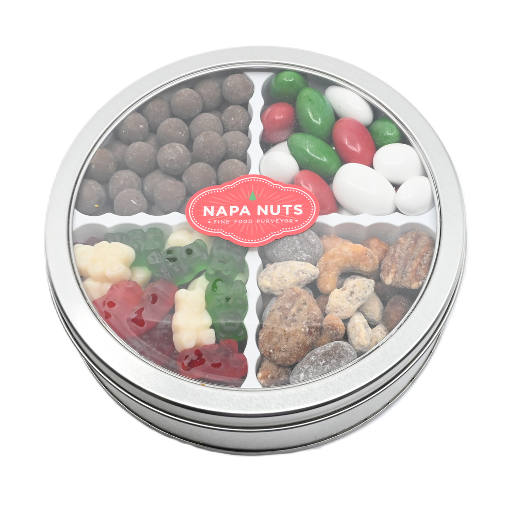 Here are a few of our favorites for Christmas! This brightly colored tin features treats with a range of sweetness for all of your family to find a favorite. We have lots of limited time items that will delight children (and their adults). Comes in a gun metal tin with a clear top; special Christmas top label included. Gift notes available as part of the checkout process.