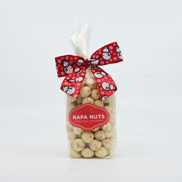Adorable Winter Holiday gift bag filled with 6.5 ounces of Holiday Sugar Cookie - Cookie Bites, sealed with a Snowman ribbon and our new fancy Napa Nuts Winter Tree label.