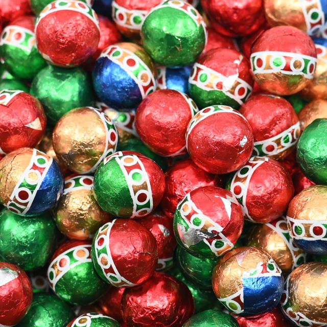 Limited time offer: Foil wrapped chocolate ornaments. They are just as cute are they are delectable.